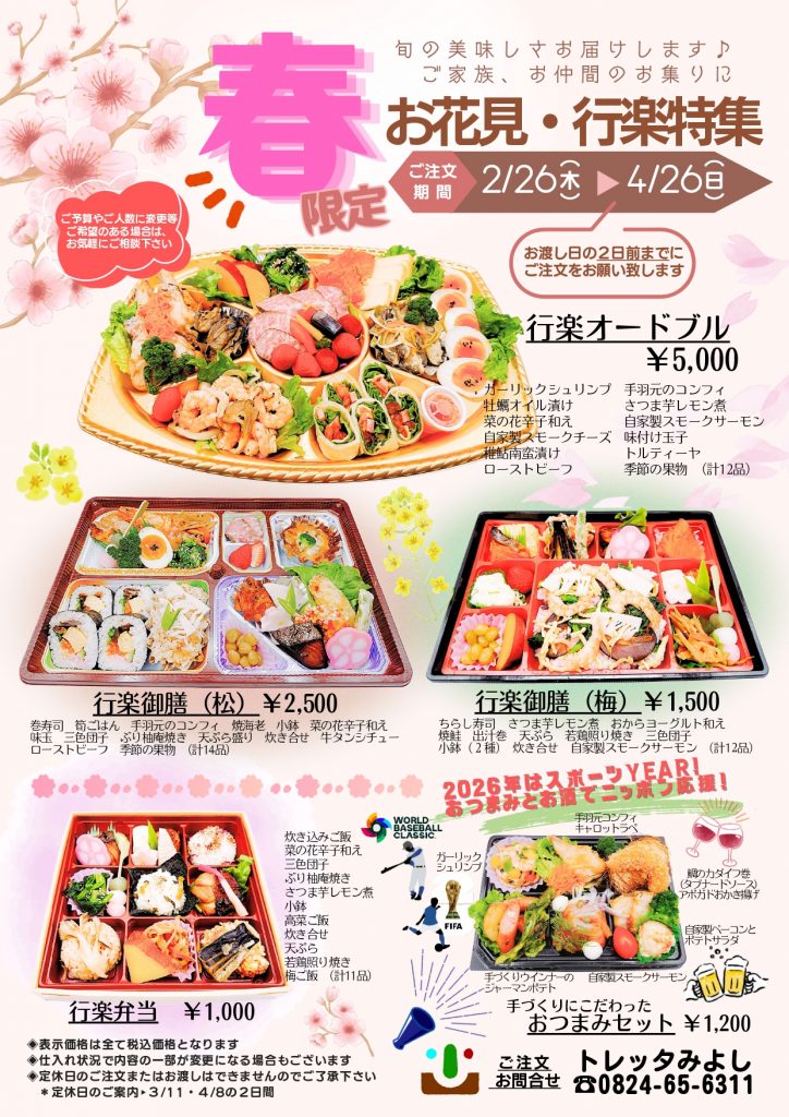 春の行楽・お花見にトレッタ自慢の手作りお弁当はいかがでしょうか?